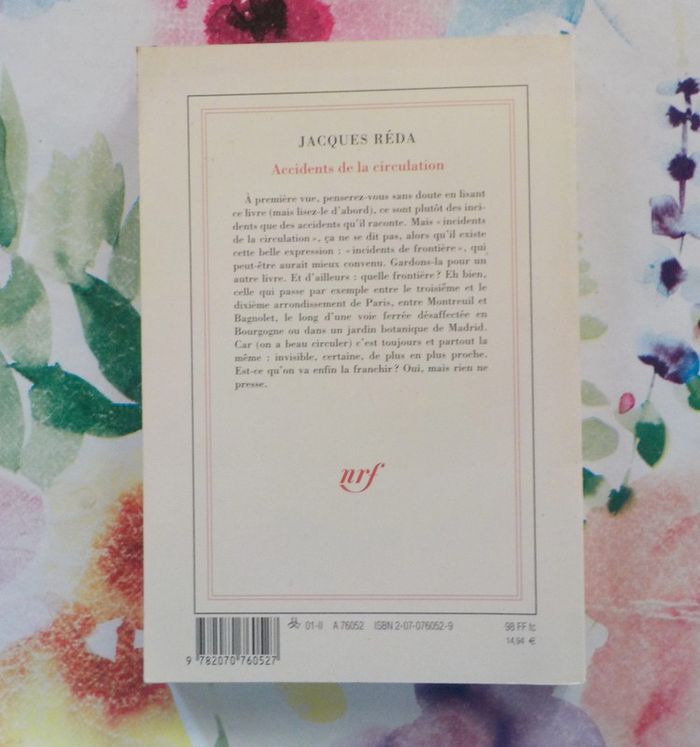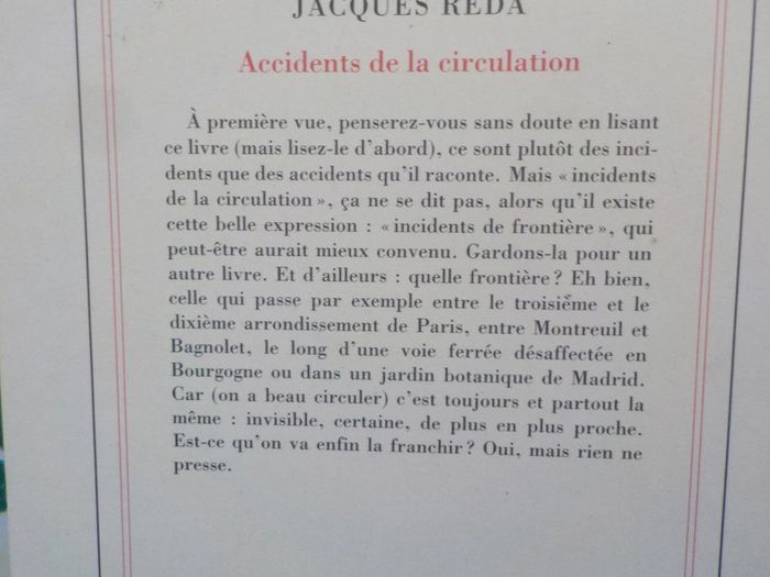 ACCIDENTS DE LA CIRCULATION de Jacques REDA Ed. Gallimard Très bon état A PART LA TRACE SUR LE BAS DE LA TRANCHE (cf photos) Résumé en photo n°2 #martinekrvromans