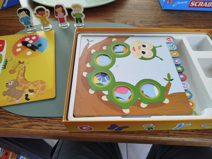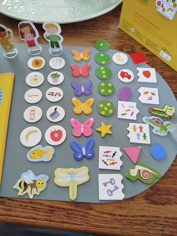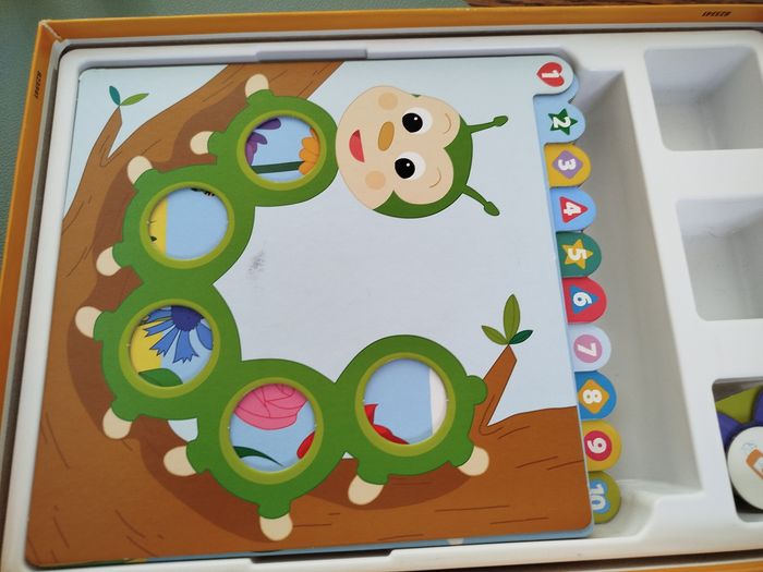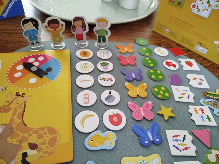 JEU MES JEUX DE PETITE SECTION – 20 ACTIVITES – 24522 Mes jeux de petite section rassemblent dans un coffret très complet et multi-thèmes plus de 20 activités différentes pour découvrir la première année de maternelle. Toutes les thématiques y sont abordées : l’apprentissage des lettres, des chiffres, mais aussi les animaux, les formes, les couleurs, le corps humain, le monde végétal, et d’autres surprises à découvrir ! Les trois mascottes, la girafe, le chien et la chenille, accompagnent l’enfant tout au long du jeu. Il évolue ainsi à travers un matériel riche, coloré et aux illustrations joyeuses, pour acquérir les fondamentaux et progresser tout en s’amusant. Pour une partie de 3 ou de 20 minutes, seul ou avec des amis, le coffret se prête à toutes les occasions de jeu. Grâce à son astucieux système de planches à onglets et son grand plateau, le jeu est facile à installer, prêt à jouer et facile à ranger. État : excellent état (très peu servi) 🙂 COMPLET 👍 Marque : ravensburger Âge : 3 ans + VEUILLEZ CONSULTER MES AUTRES ARTICLES JE FAIS UN GRAND TRI, AVEC DES SUPER PROMOTIONS EN LOT, ET J'ENVOIE LE JOUR MÊME N'HÉSITEZ PAS À POSER VOS QUESTIONS