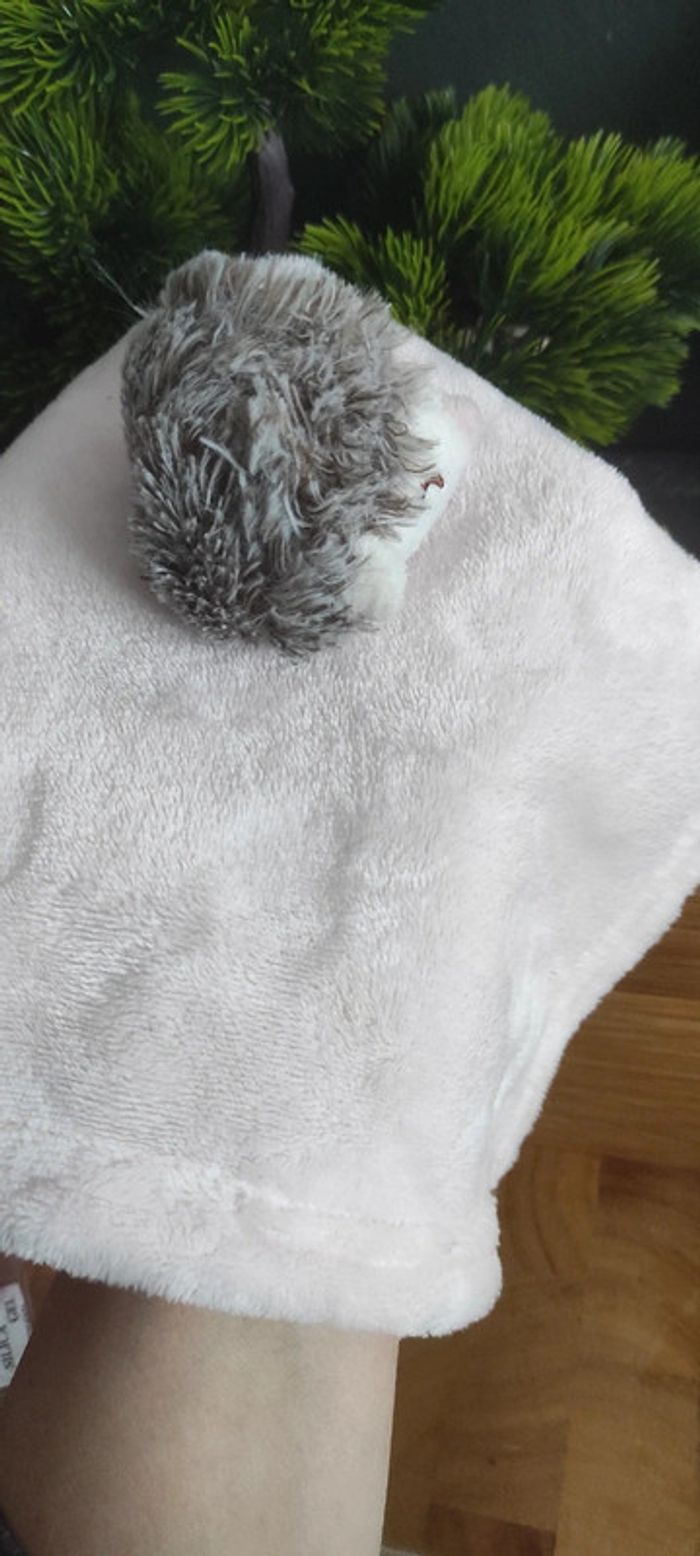 Doudou plat hérisson rose velours carré 29 cm gris Yeux Fermés Dormeur Sommeil - photo numéro 3