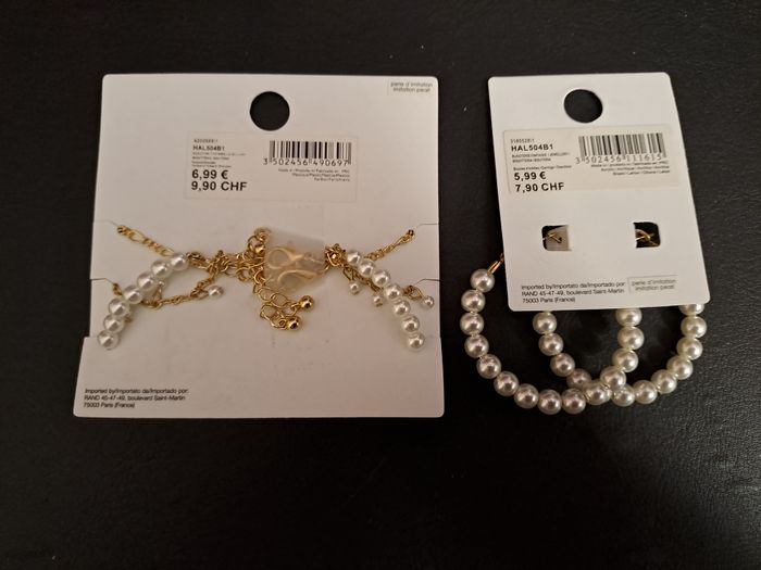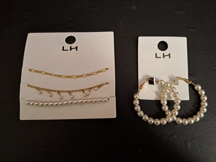 Lot de bracelets + boucles d'oreilles. Neuf, jamais utilisé.