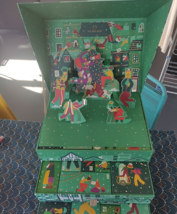 Calendrier Body Shop en parfait état intérieur, coins extérieurs de la grosse boite un peu abîmés, trois étages et un petit décor intérieur. Très joli ouvert très joli fermé ! Vendu vide ! Je vends suffisamment d'articles dans mon dressing pour que vous puissiez le remplir, faites votre choix 😉