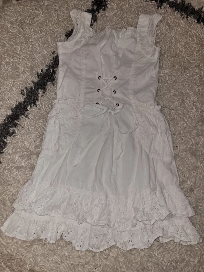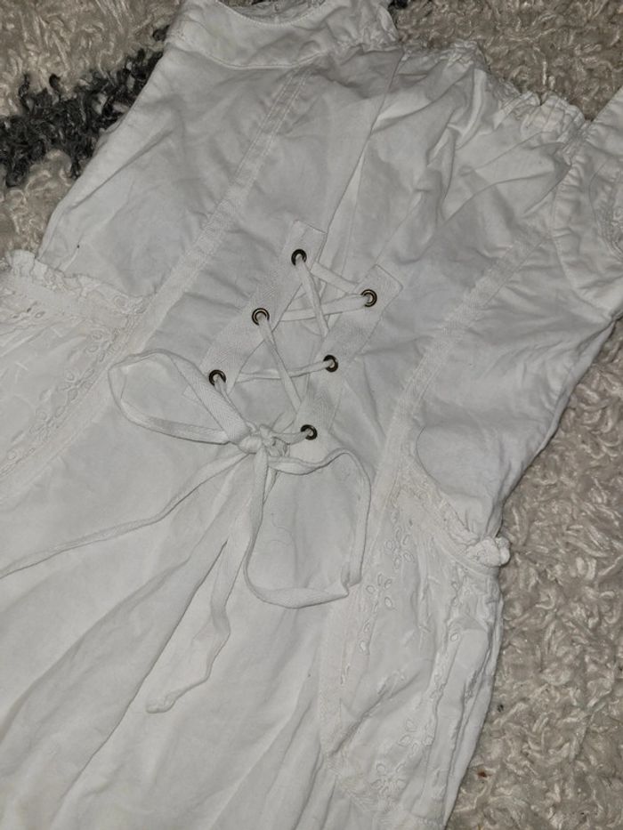 Robe à bretelles, broderie anglaise, laçage dans le dos