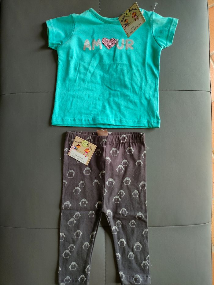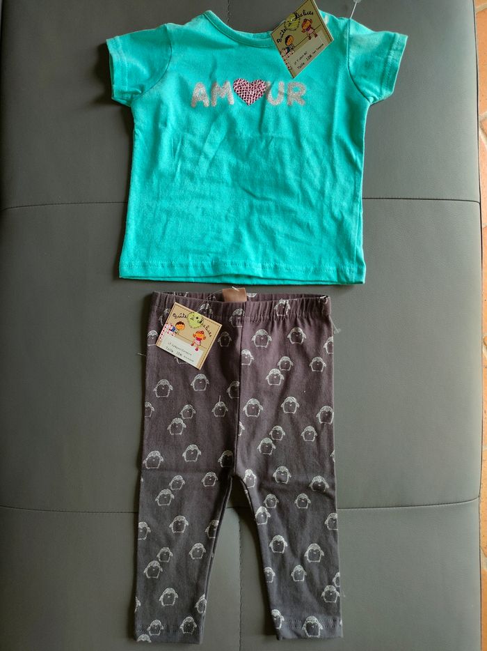 Ensemble tee-shirt et bas legging neufs encore avec étiquettes d'origine d'achat ! Taille 12 mois Idéal pour les beaux jours ☀️ Marque boîte à malices