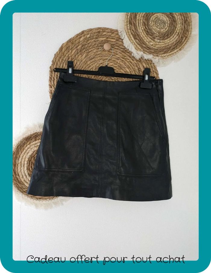 Petite jupe noire en similicuir Longueur : 41,5cm 👗Marque : H&M 👗Taille : 38 #modelia8638 #modelia86h&M #h&M #jupesimilicuir
