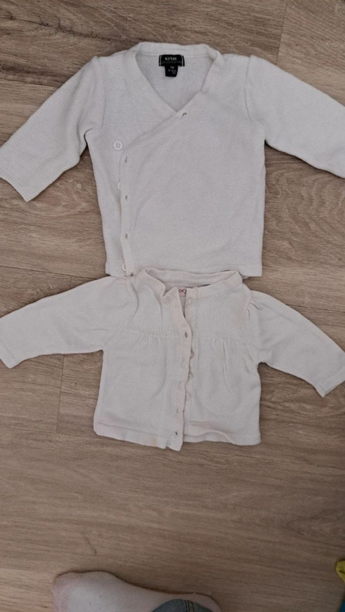 Lot de 2 gilets blanc tache sur 1 des gilet. Taille 1 mois.