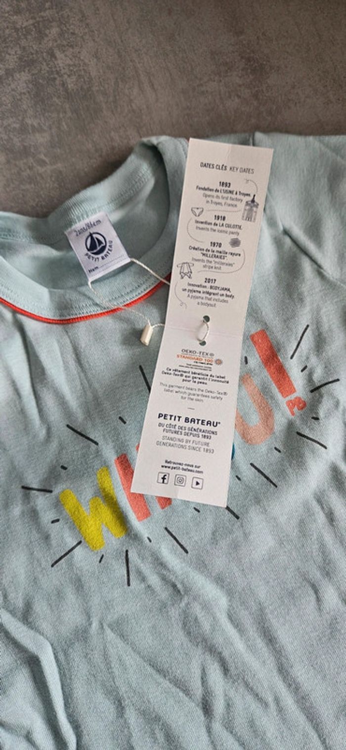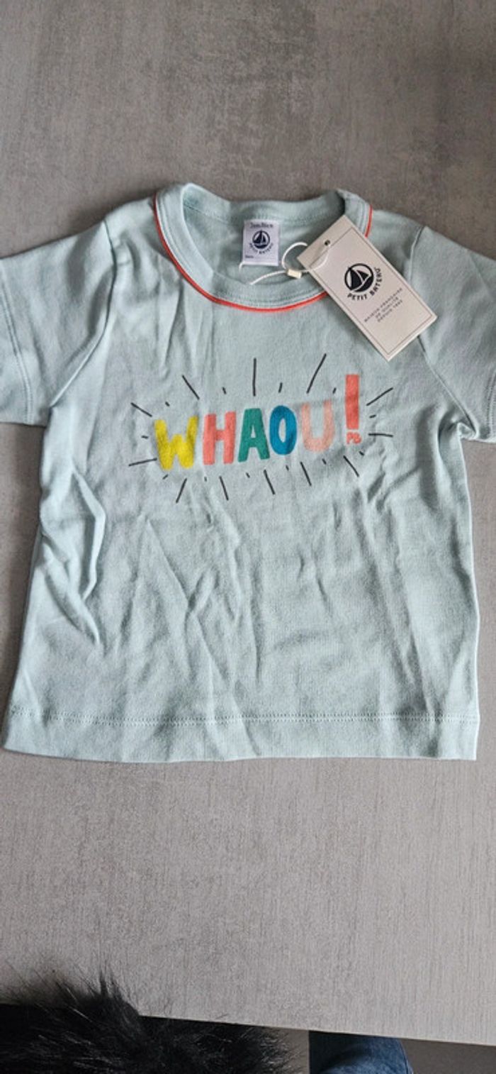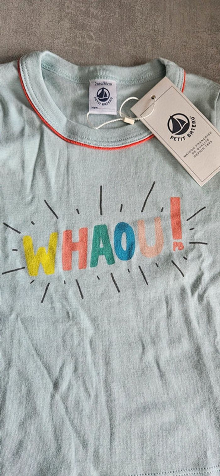 Neuf avec étiquette Haut manches courtes été bleu clair "whaou !" Petit bateau taille 2 ans 86 cm