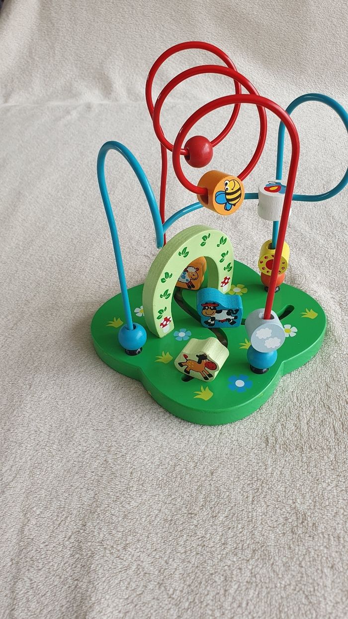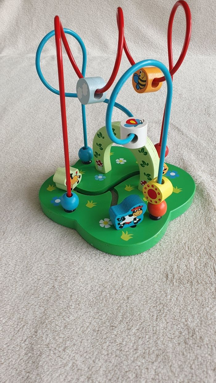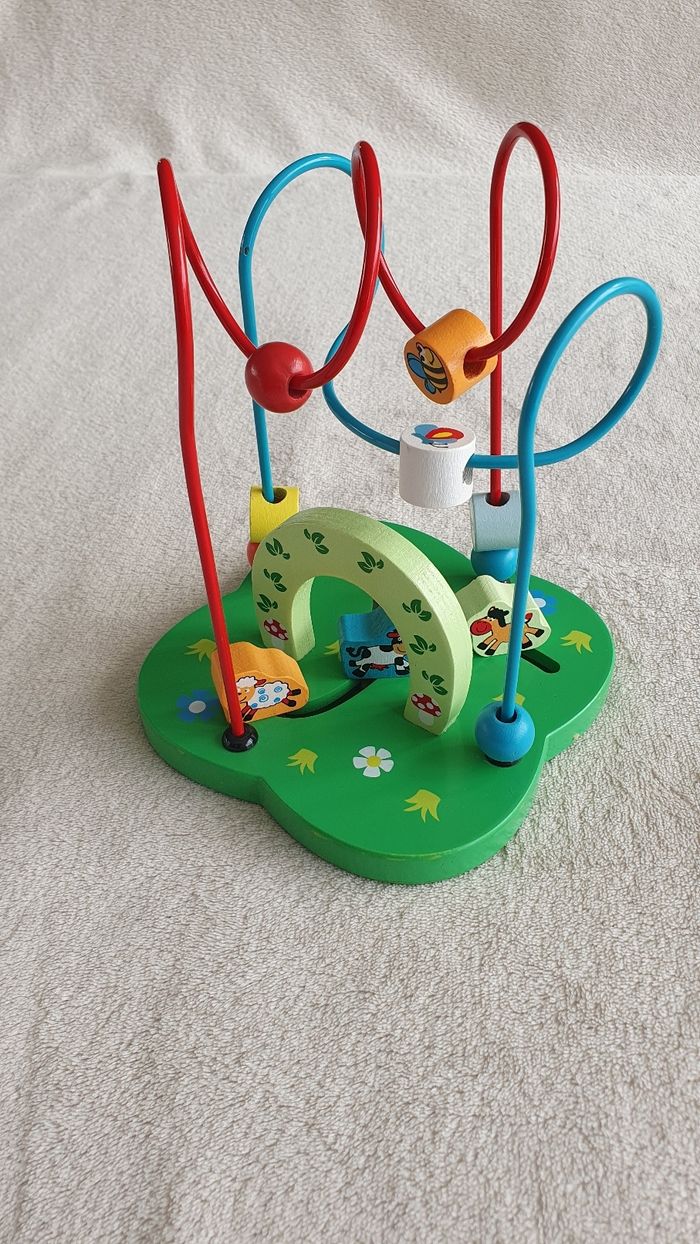 Jeu spiral en bois qui permet de développer la pensée dans l'espace. Couleurs fun et vives pour éveiller l'enfant. Dès 18 mois Très bon état