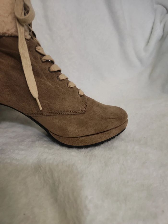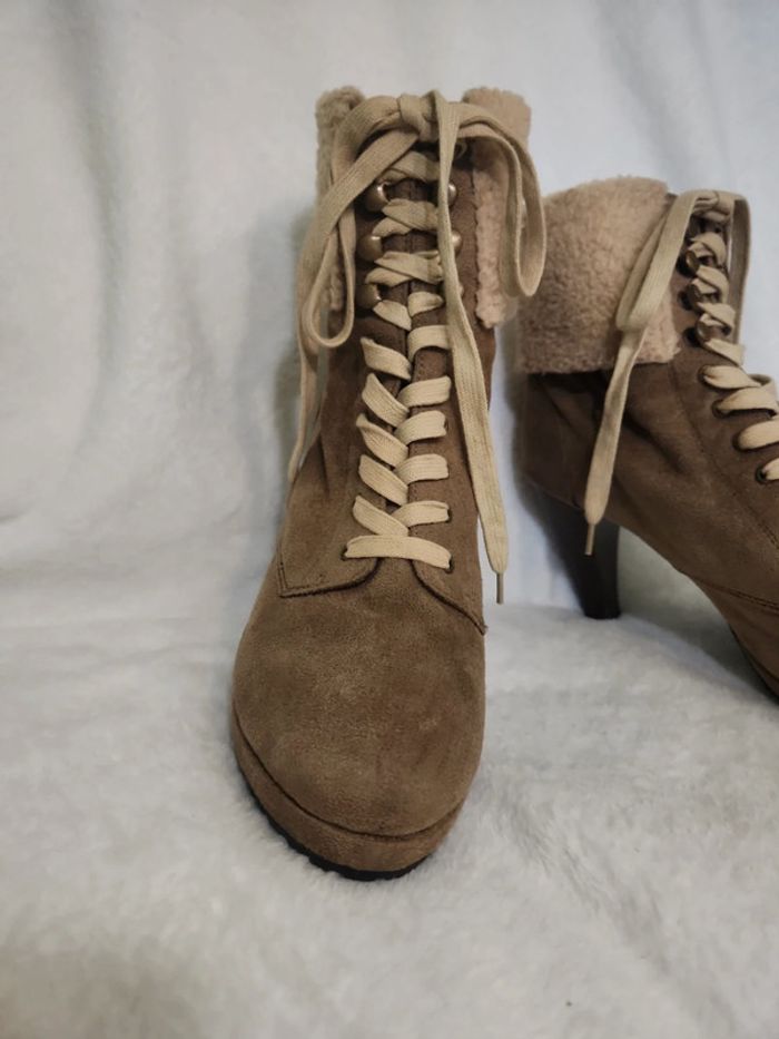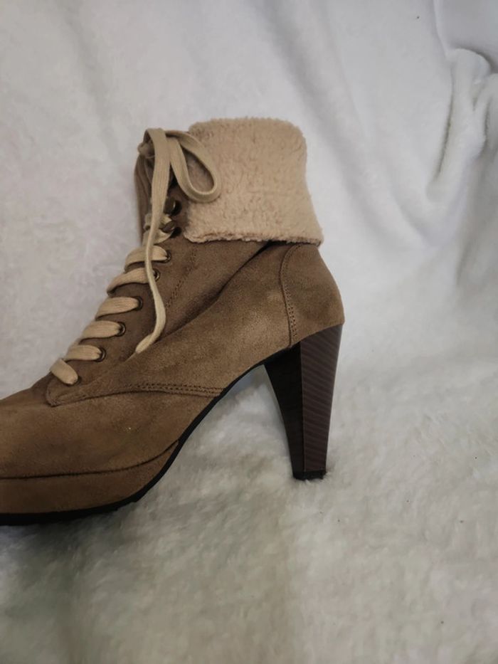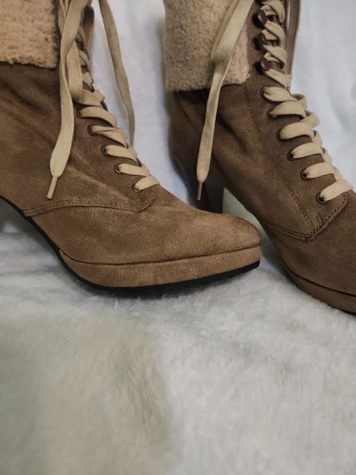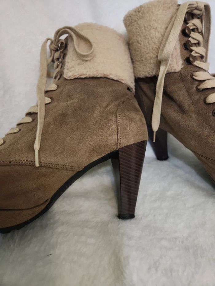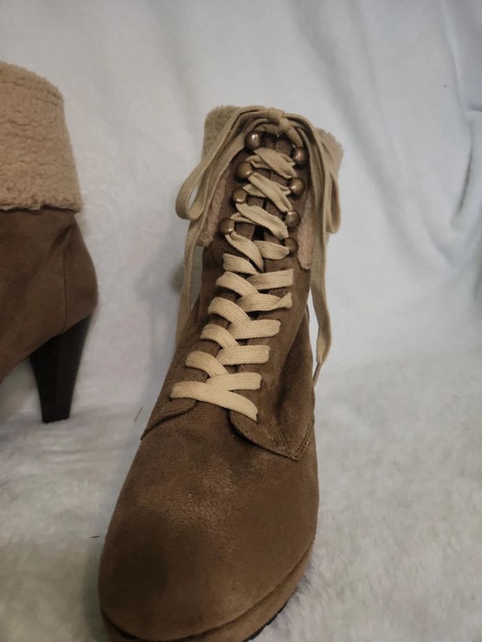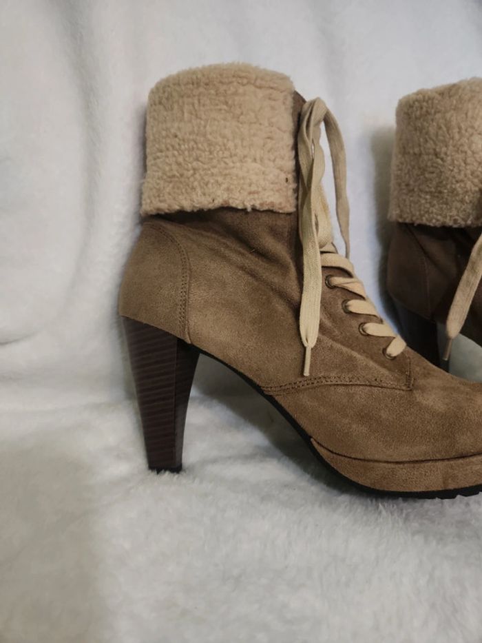 Bottines montantes avec moumoute et lacets Promod 40 beige