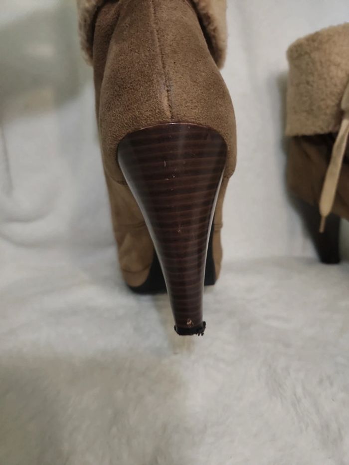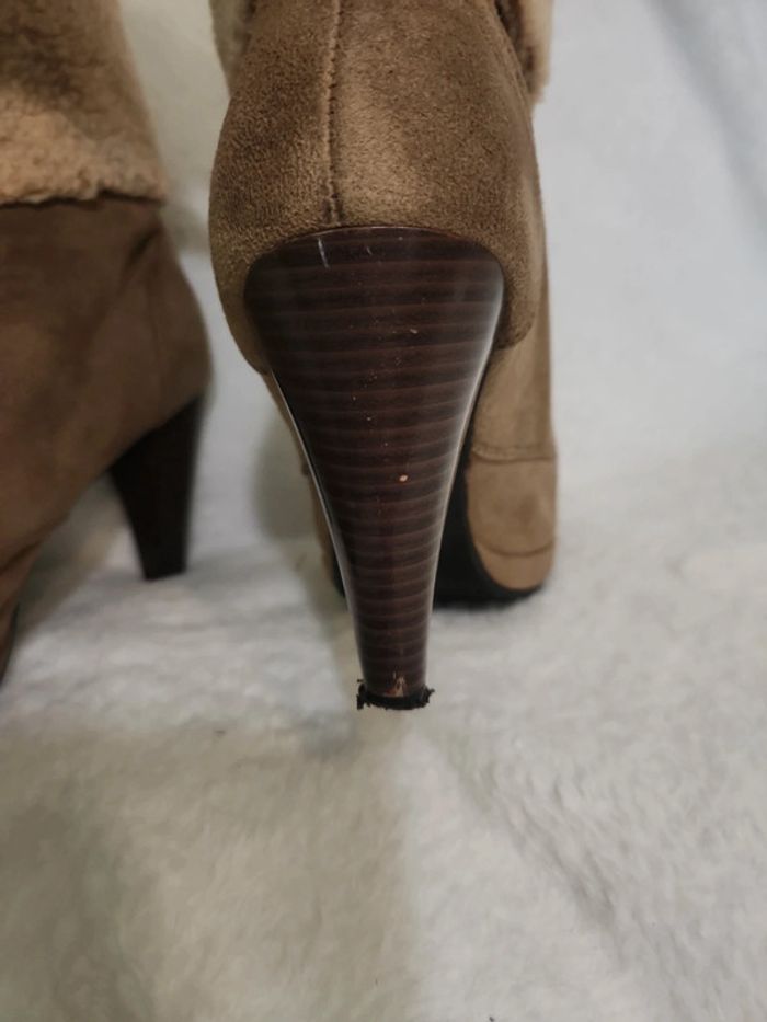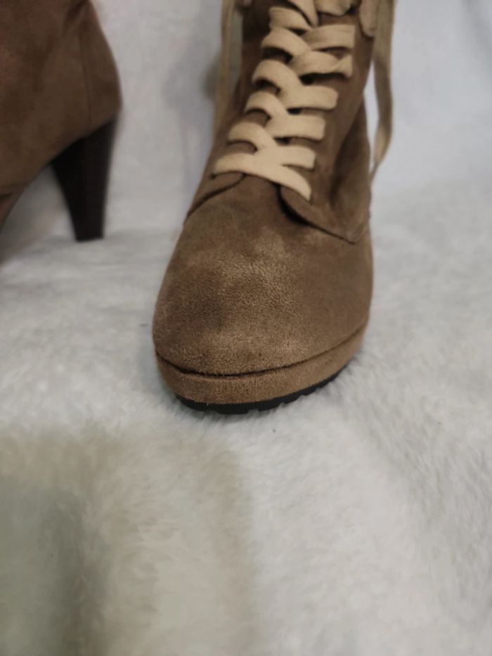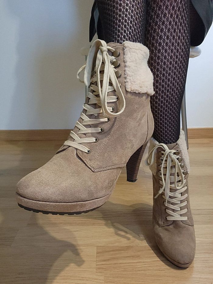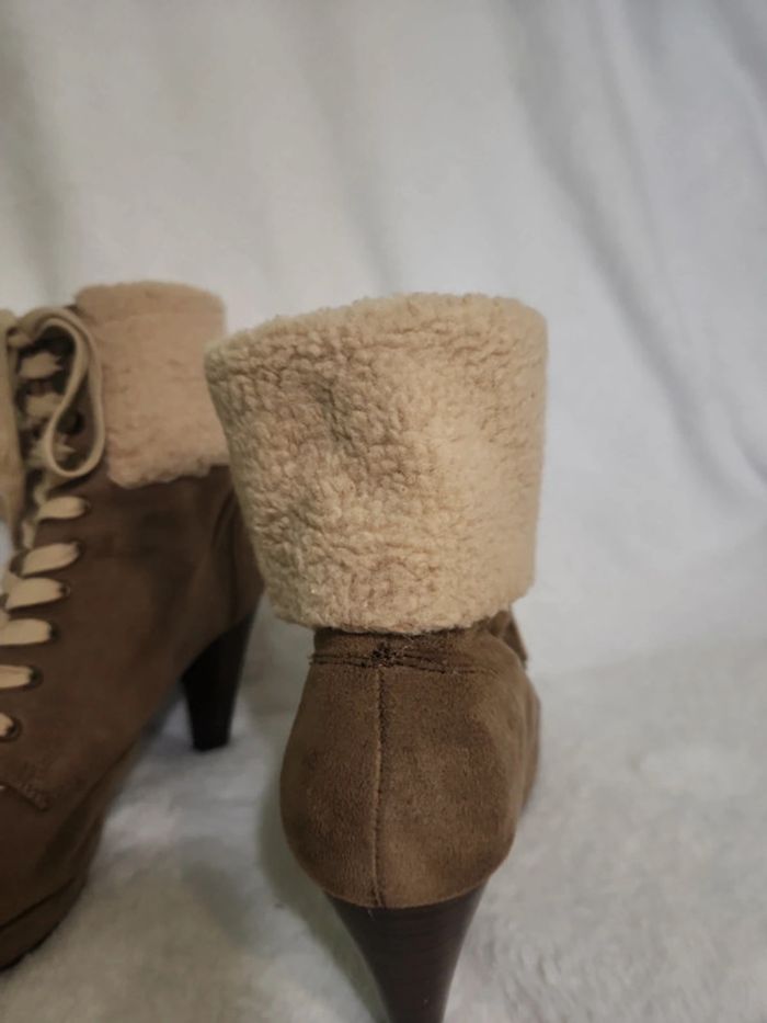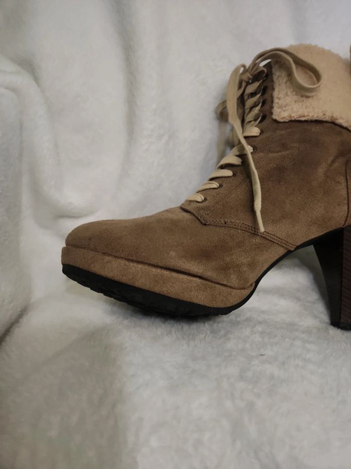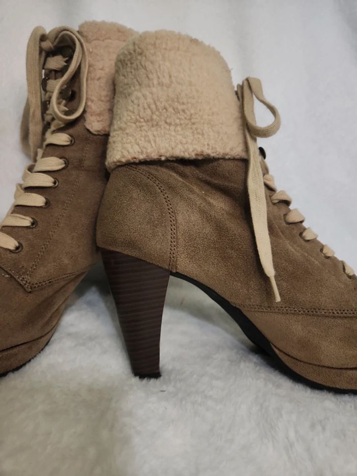 Bottines montantes avec moumoute et lacets Promod 40 beige