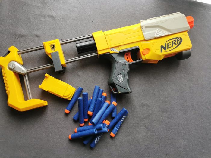 Jouet mitraillette jaune Nerf avec les munitions - photo numéro 1