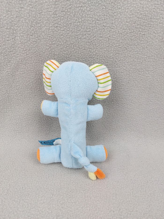 Peluche doudou éléphant bleu BEBEREVE CASINO vert orange Pouet Pouet 18 cm - photo numéro 1