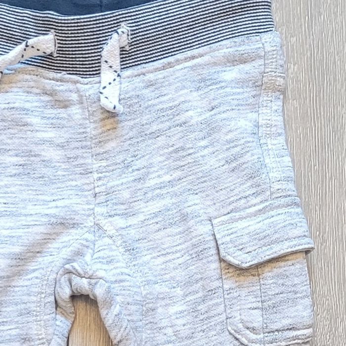 Pantalon gris chiné, avec ceinture élastique large bleu et blanc. Garçon 12 mois. Marque Gémo baby Très bon état Il y a plein d autres articles dans cette taille dans mon dressing  🤗 #lunaclara60garcon12mois