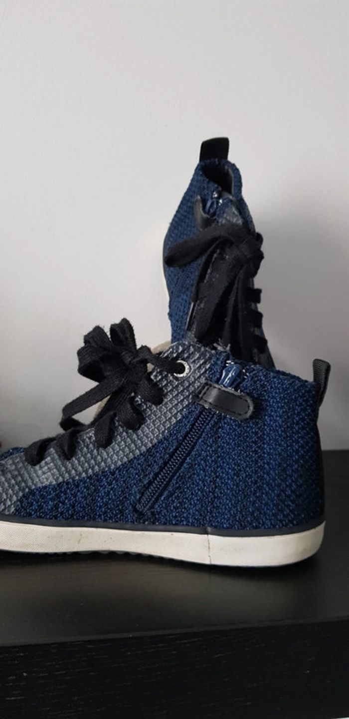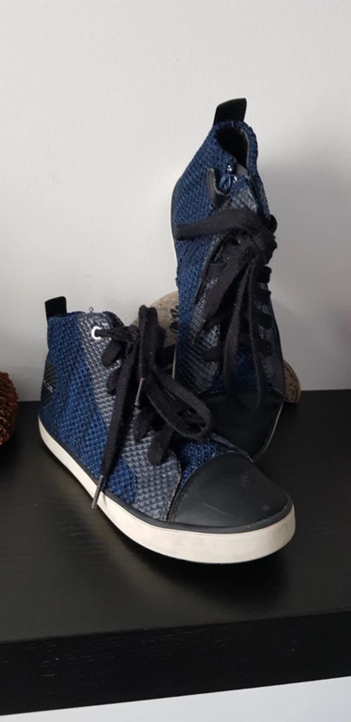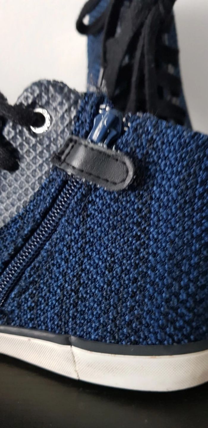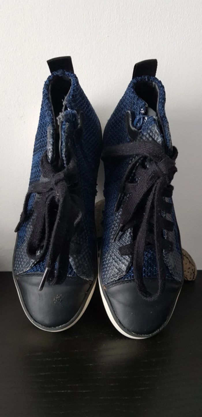 Bottines avec un joli effet bleu marine et noires, ouverture zippée, petit scratch et lacets en petit plus - T. 34 - Devant un peu rappé pour l'une des chaussures mais rien de bien méchant et reste en TRÈS BON ÉTAT dans l'ensemble.