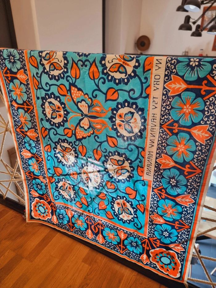 Tissu / nappe fleuri bleu et orange couleur très vives 160x108 Très bon état ⚠️ ne bénéficie pas des remises de lot #dodi68_deco Vintage
