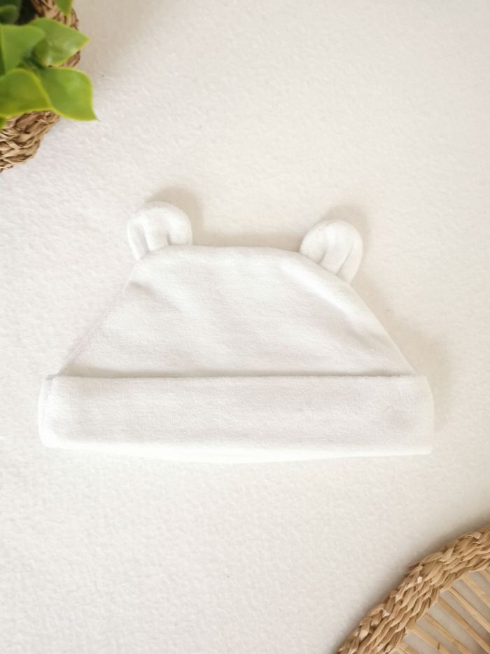 Bonnet blanc en velours à oreilles La Halle 1 Mois - photo numéro 1