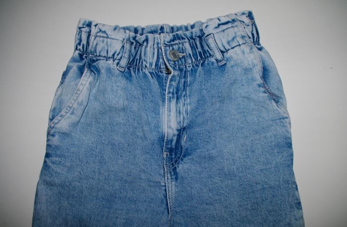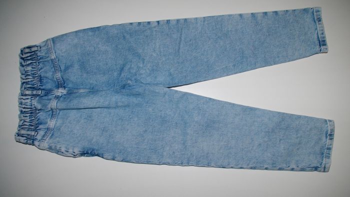 jean en coton, bleu ciel, taille élastique, coupe droite, bouton et fermeture éclaire, 1 poche sur les côtés, marque: H&M, pour fille taille 9ans 10ans, très propre, sans aucun trous ni taches
