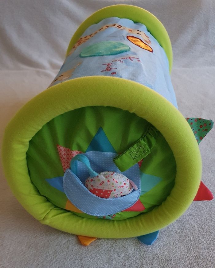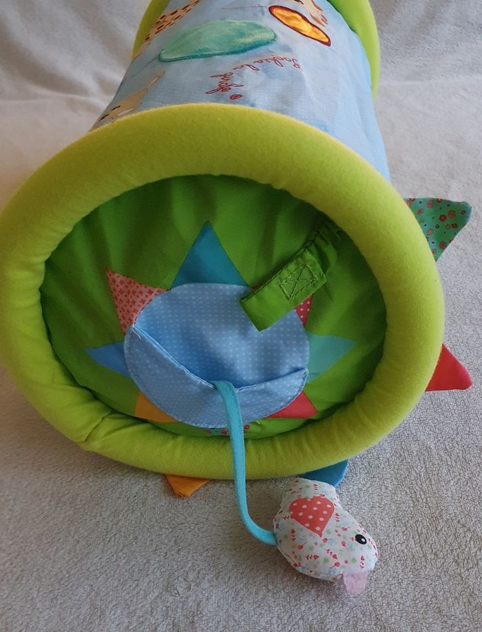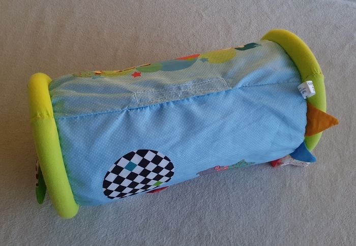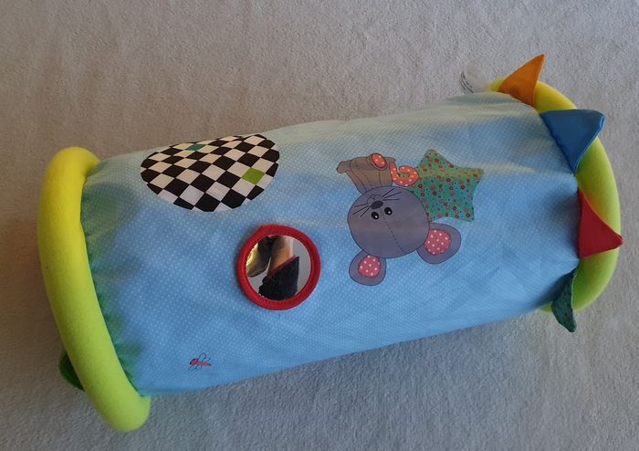 Le jeu d'activité Rollin' est doté de nombreuses activités sonores et tactiles qui éveilleronta curiosité et les sens de bébé. Un jouet multifonction: miroir, balles sonores, papier froissé, anneau texturé,... pour éveiller les sens de bébé. Il pourra l'escalader, le faire rouler ou le chevaucher afin de développer la motricité et l'équilibre Léger, rapide à gonfler, facilement transportable Housse en tissu amovible et lavable Dimensions: longueur 42 cm; diamètre 24 cm Dès 6 mois