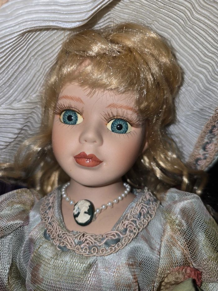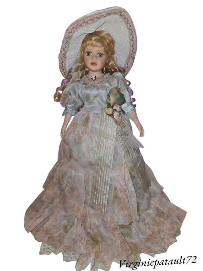 Hauteur : 45 cm Petite tache sur le chapeau. Et la dentelle qui s'est enlevé du chapeau, on voit les points de couture enlevés (4e photo) #VP72_poupée_collection Remise activée par lot : 2 articles : 5% de réduction 3 articles : 10% de réduction 5 articles : 15% de réduction N'hésitez pas à regarder mes autres ventes