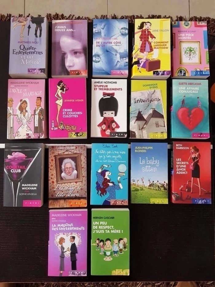 Lot ou au choix de 21 livres de poche de la collection PIMENT, tous aussi passionnant les uns que les autres. N'hésitez pas à venir vers moi pour une photo de la 4ème de couverture afin d'avoir un extrait du livre - TRÈS BON ÉTAT COMME NEUF. 2€ l'unité - 35€ le lot 📖 REVENIR VERS MOI POUR LES FRAIS SI PLUSIEURS LIVRES (le colis total fait un peu plus de 4,5 kg)