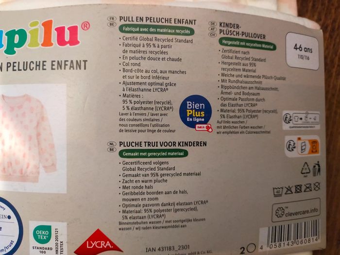 Pull tout doux molletonné Taille 4-6 ans Neuf