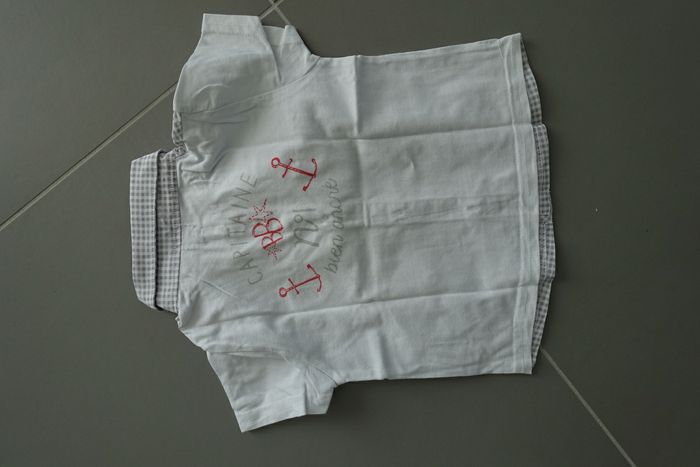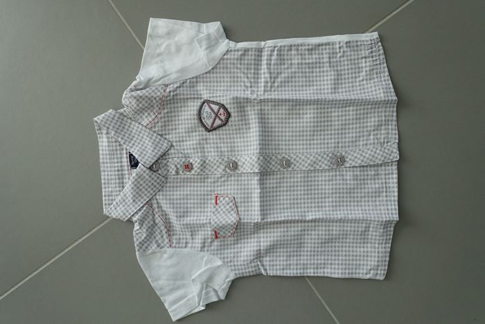 Chemise manches courtes Terre de marins 12 mois Blanc et gris à carreaux
