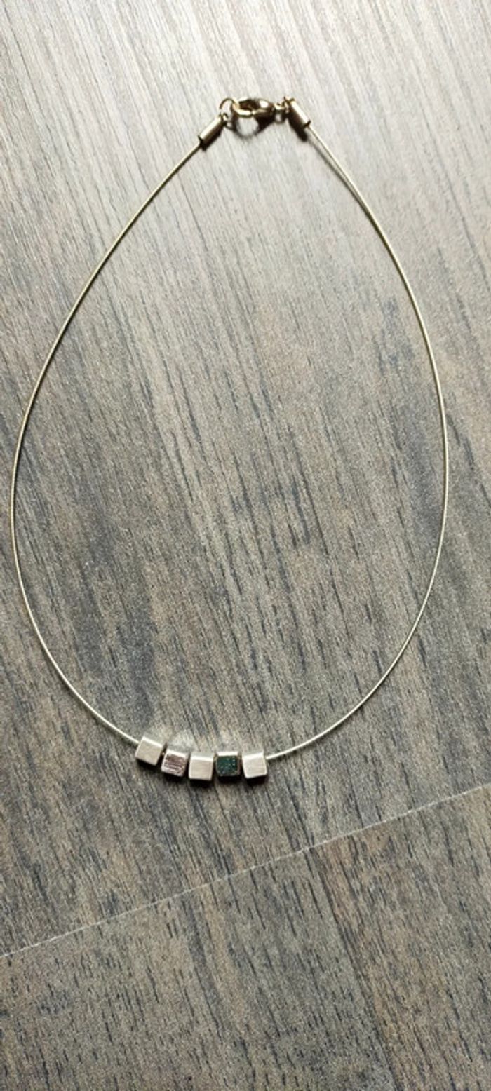 Collier 5 cubes sur fil acier