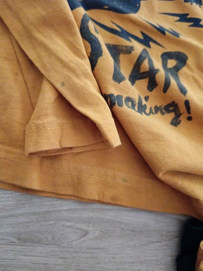 Lot de 4 t-shirt manches longues de marque Orchestra taille 4 ans. Petites tâches verte sur le jaune comme montre les 2 dernière photo