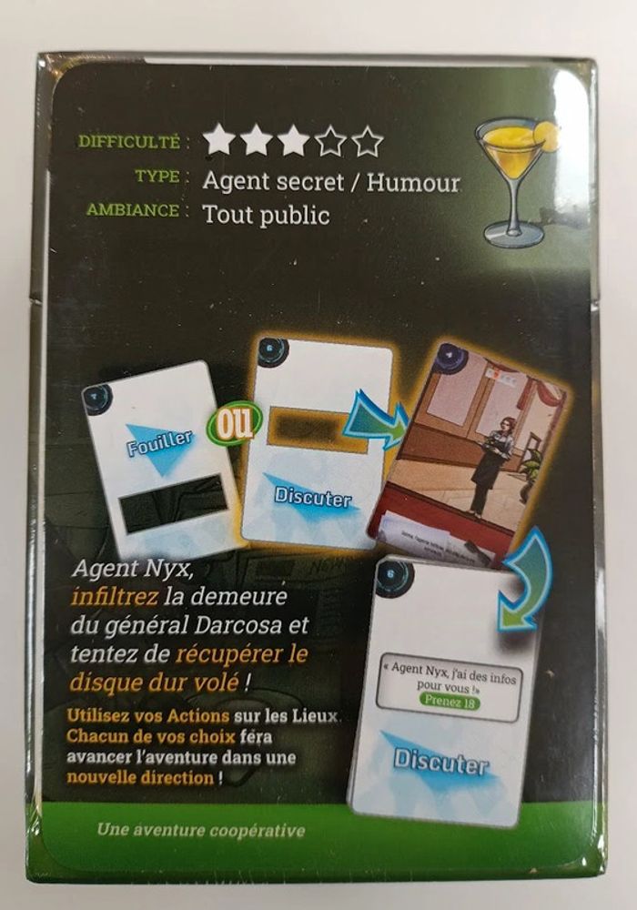 Ludipresta : Vente professionnelle - Jeu de société sous emballage - Prix Ferme Français à partir de 10 ans 30mn à 1h 1 à 6 joueur(s) Mécanisme(s) : Coopératif, Cartes, Déduction Les Noces d'Emeraude: deuxième aventure de la série Backstories Backstories est un jeu d'aventure qui fonctionne à la manière d'un "point & click". Choisissez une action (Fouiller, Discuter, Explorer, etc ...) sur un lieu, et révélez les conséquences de votre choix grâce à un astucieux système de cartes perforées. Plusieurs fins sont possibles : Vos choix, VOTRE aventure !