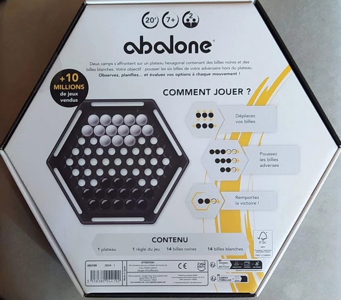 Un classique qui a été vendu à plus de de 10 millions d'exemplaires. Abalone fait l'objet de tournois et de championnats officiels. Il a été nommé As d'Or "Jeu de la décennie au Festival International des Jeux de Cannes