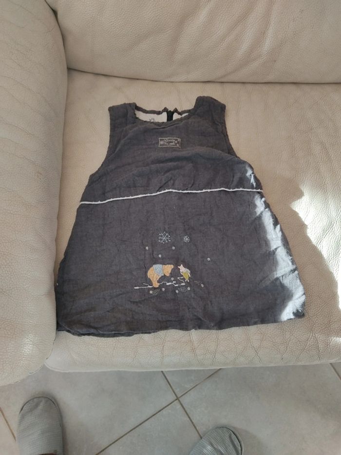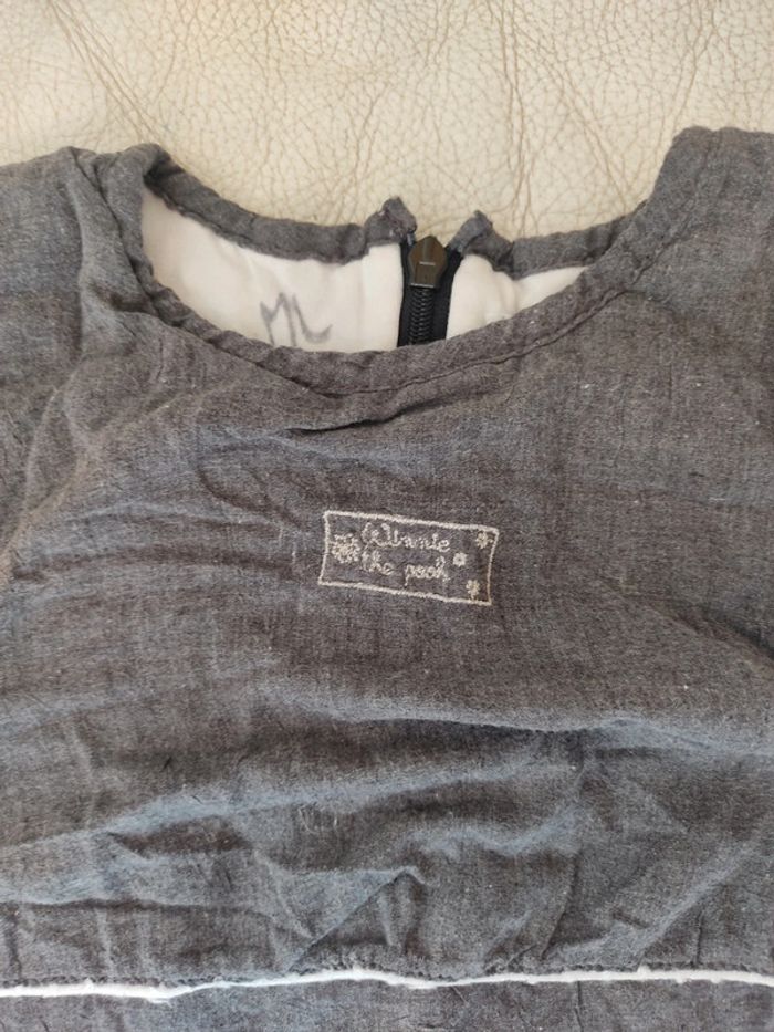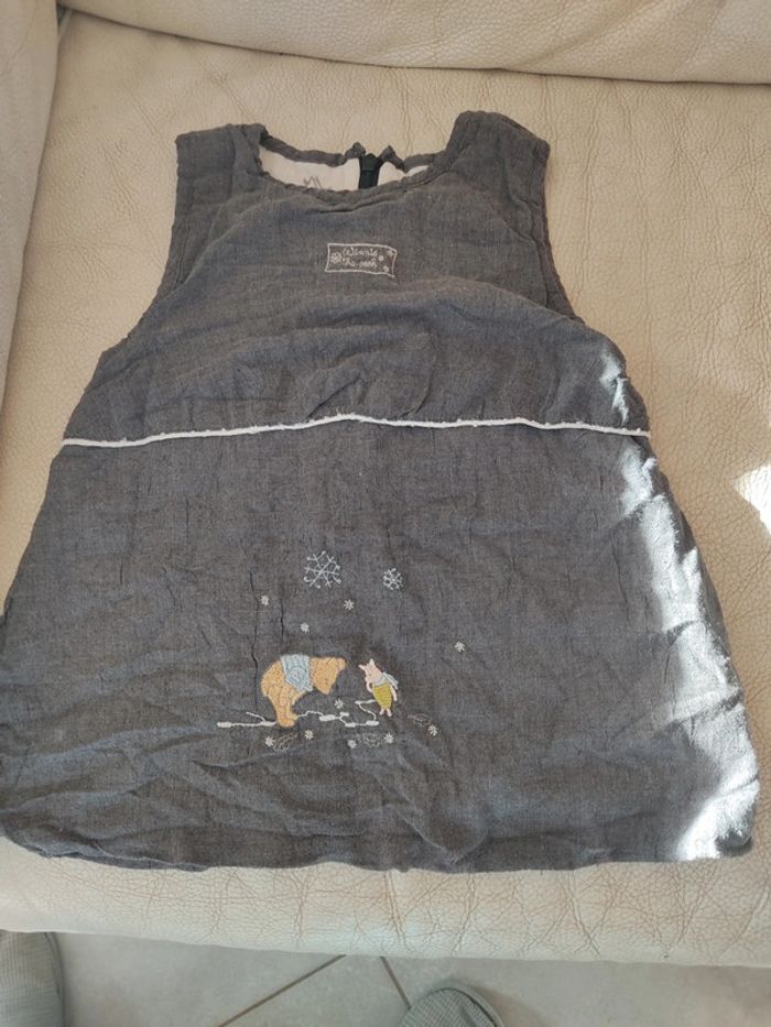1 robe doublée grise motif Winnie l'ourson. Clayeux Disney. Fermeture éclair au dos pour faciliter l enfilage. Très bon état