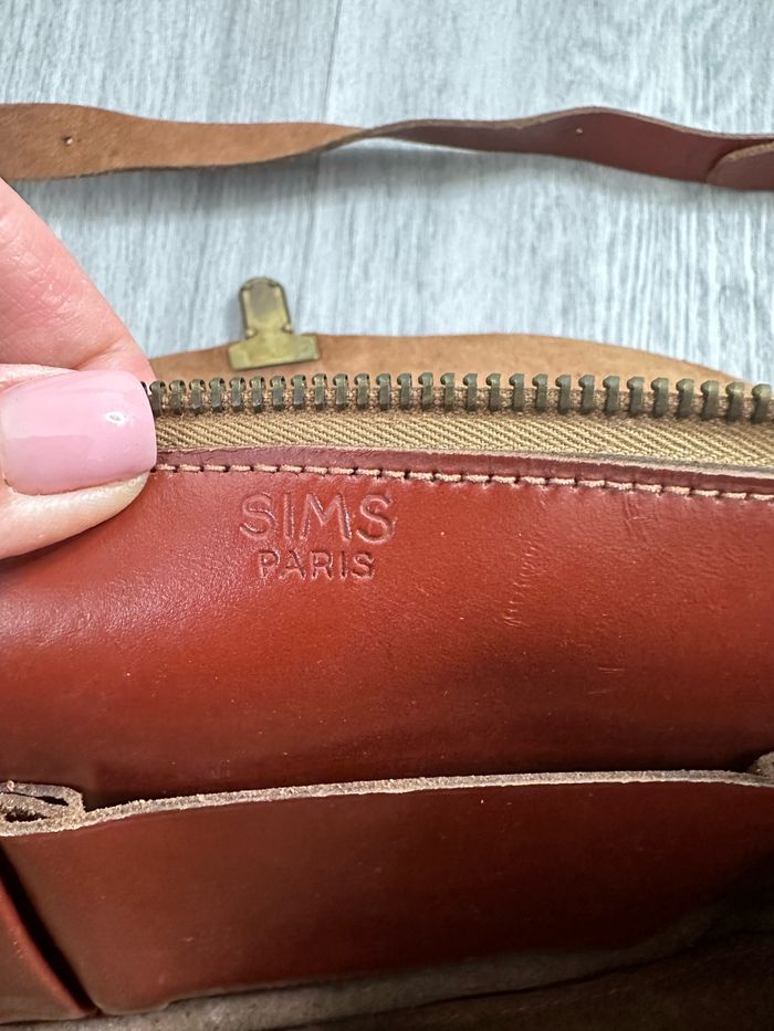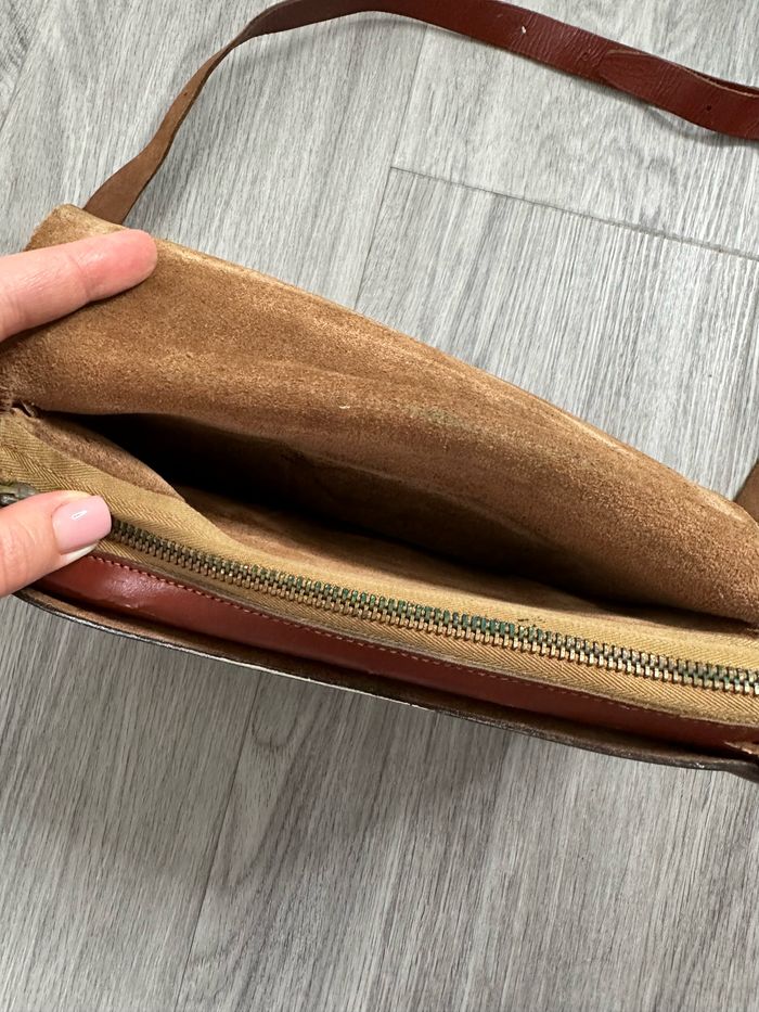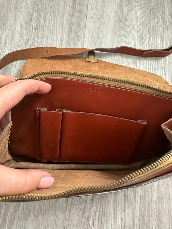Sac bandoulière camel marron ocre en cuir véritable Sims Paris Vintage - photo numéro 9