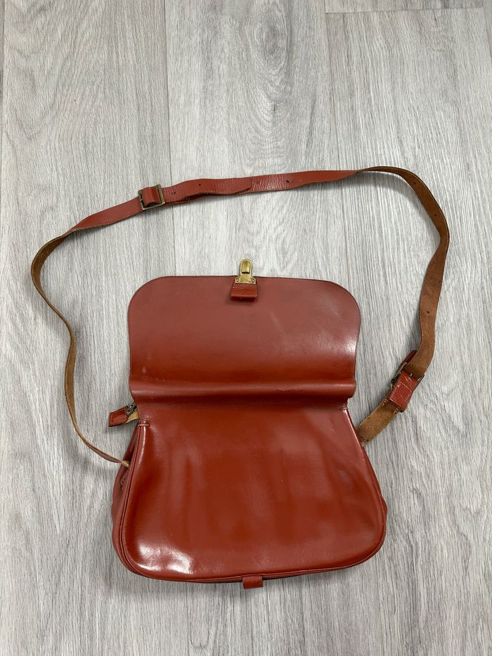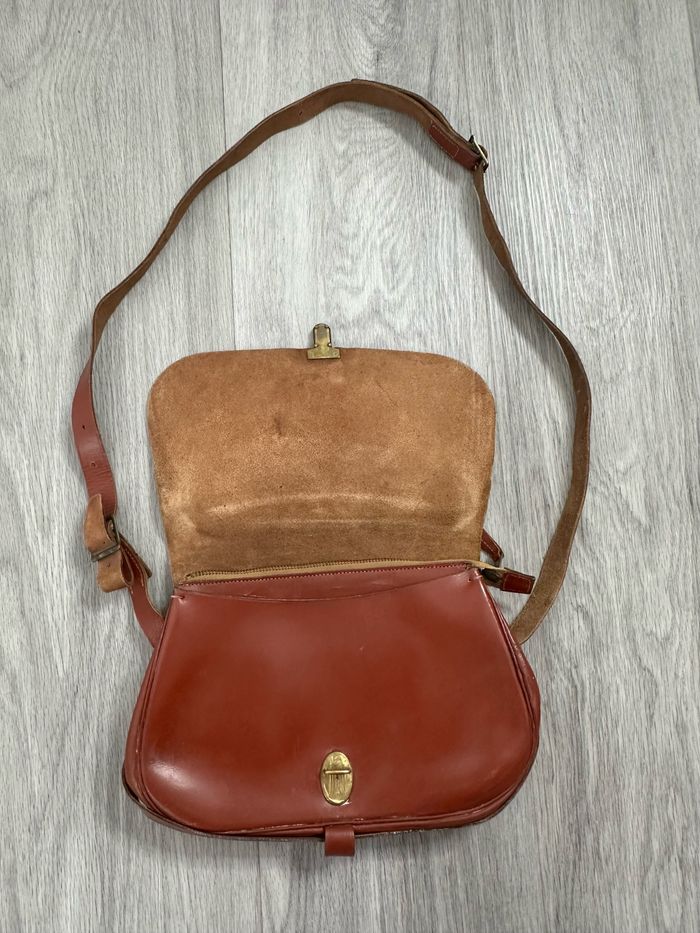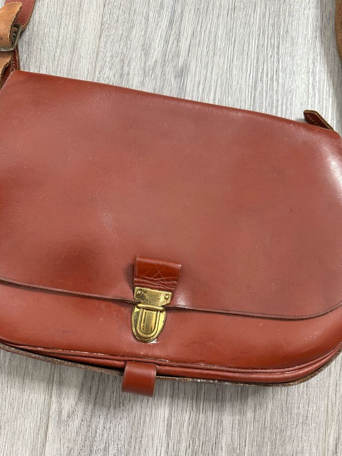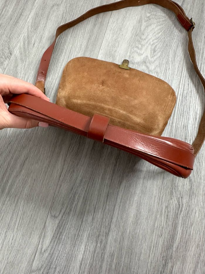 Sac bandoulière camel marron ocre en cuir véritable Sims Paris Vintage - photo numéro 6