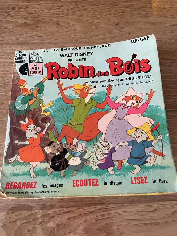 Livre disque Robin des bois Walt Disney 45T longue durée Le livret présente de nombreuses imperfections (voir photos) Disque testé Années 80