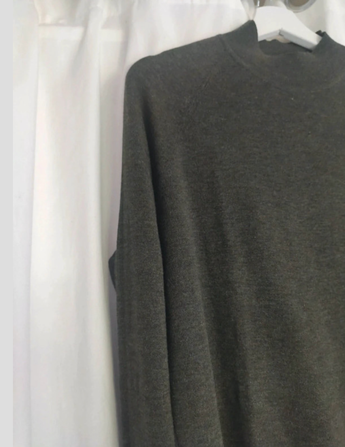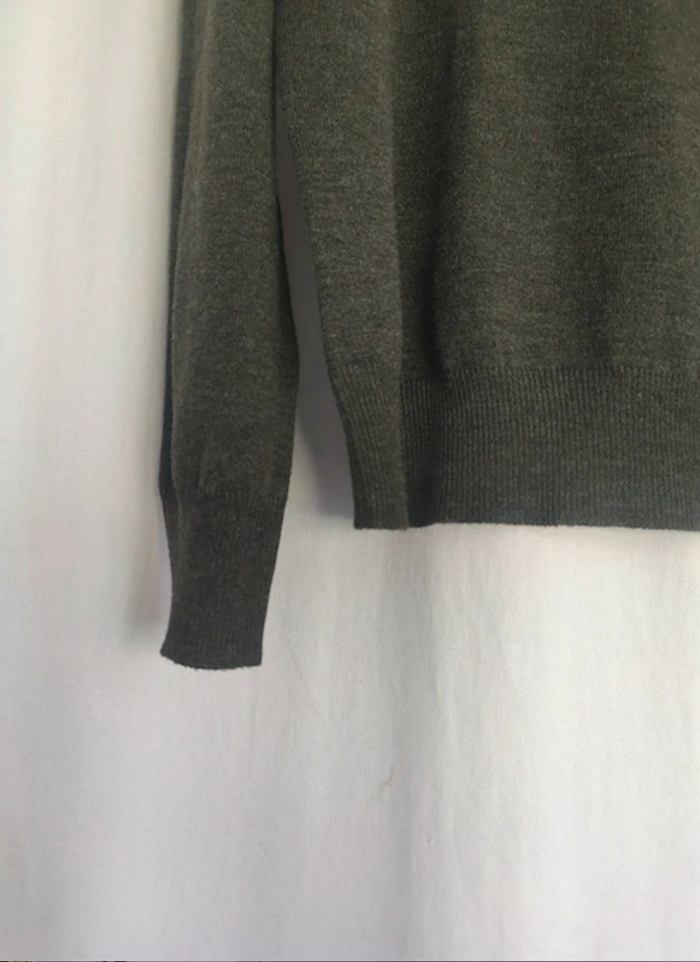 Pull fin avec col légèrement montant couleur vert bouteille chiné. Taille M. Il a été lavé mais jamais porté. Des petits points blancs dans la maille d'origine, c'est une couleur chinée donc irrégulière. Acheté chez Primark #vulariFemmesM38 #vulariPrimark