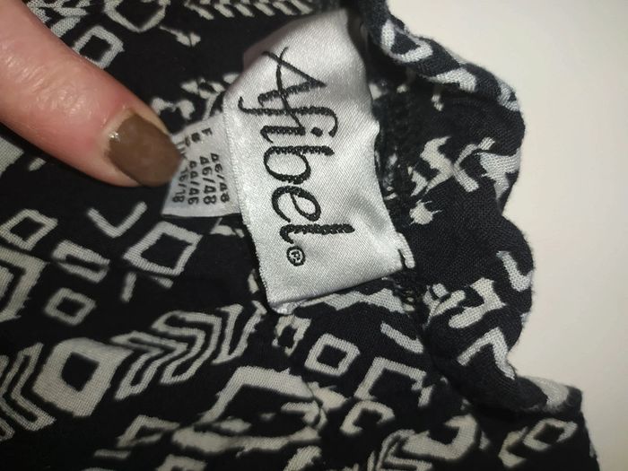 Joli pantalon fluide d'été Afibel Noir et blanc Taille 46/48. Taille elastiquée Mesure à plat de la taille 45 cm Longueur pantalon totale 101 cm 100% viscose Excellent état, porté 1 fois, lavé