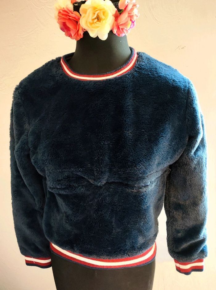 Pull d'allaitement upcyclé grâce à 2 zips invisibles horizontaux ( zip sous l'aisselle) Détails liseré blanc rouge sur les extrémités Peut convenir à une taille XS/ S #allaitement #allattamento #lactancia #breastfeeding