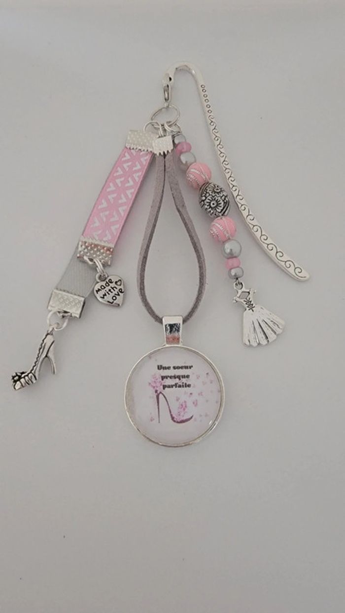 Cadeau sœur, bijoux de sac ou marque page " sœur presque parfaite"