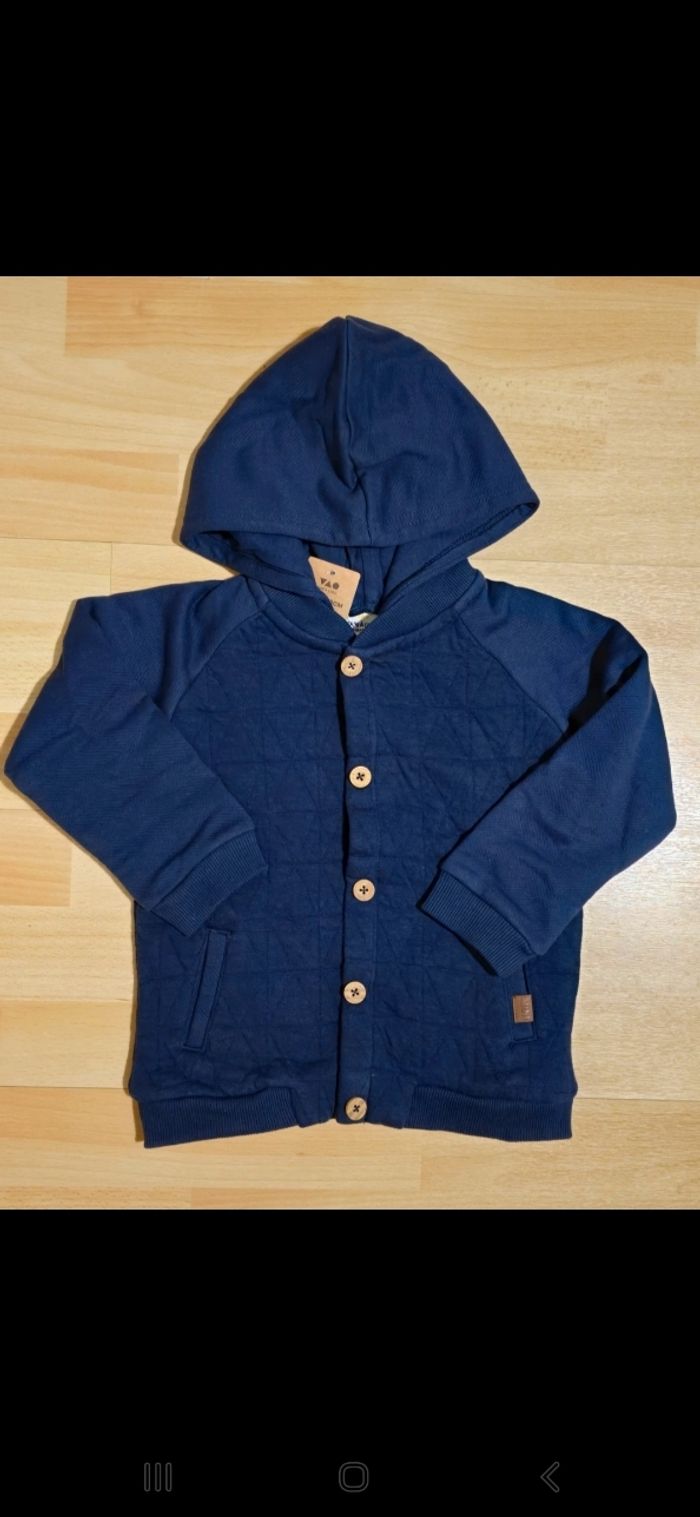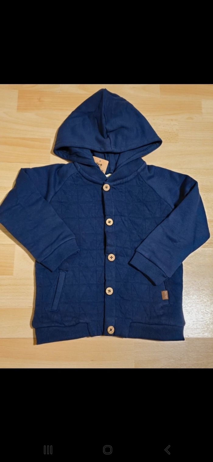 NEUF (non porté)⚘️💙🤩 superbe gilet molleton Capuche amovible 36moiq (98cm) garçon 💙⚘️🤩 - photo numéro 1
