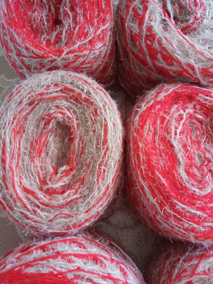 Lot de 7 Pelotes Fantaisies Rouge et Beige très clair effet brillant (500g) - photo numéro 1