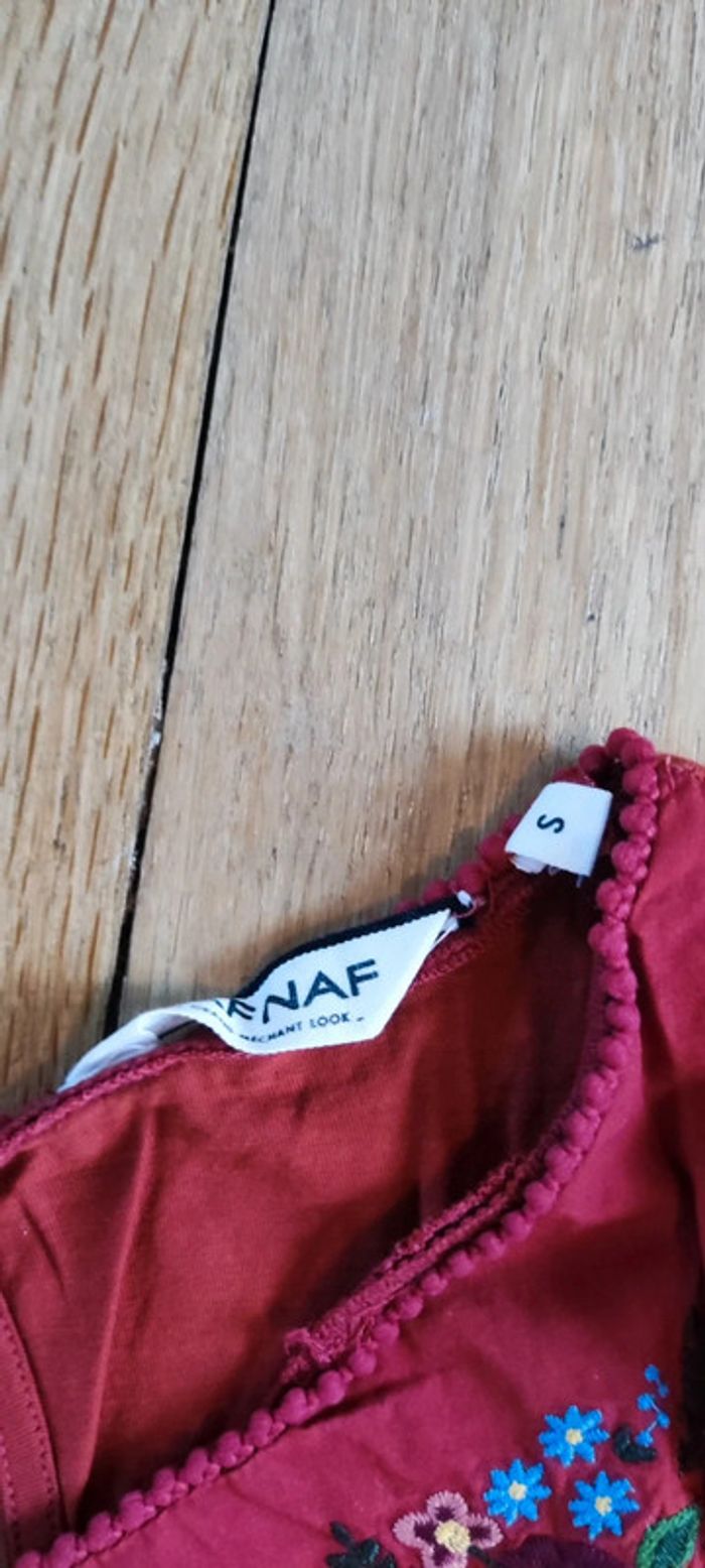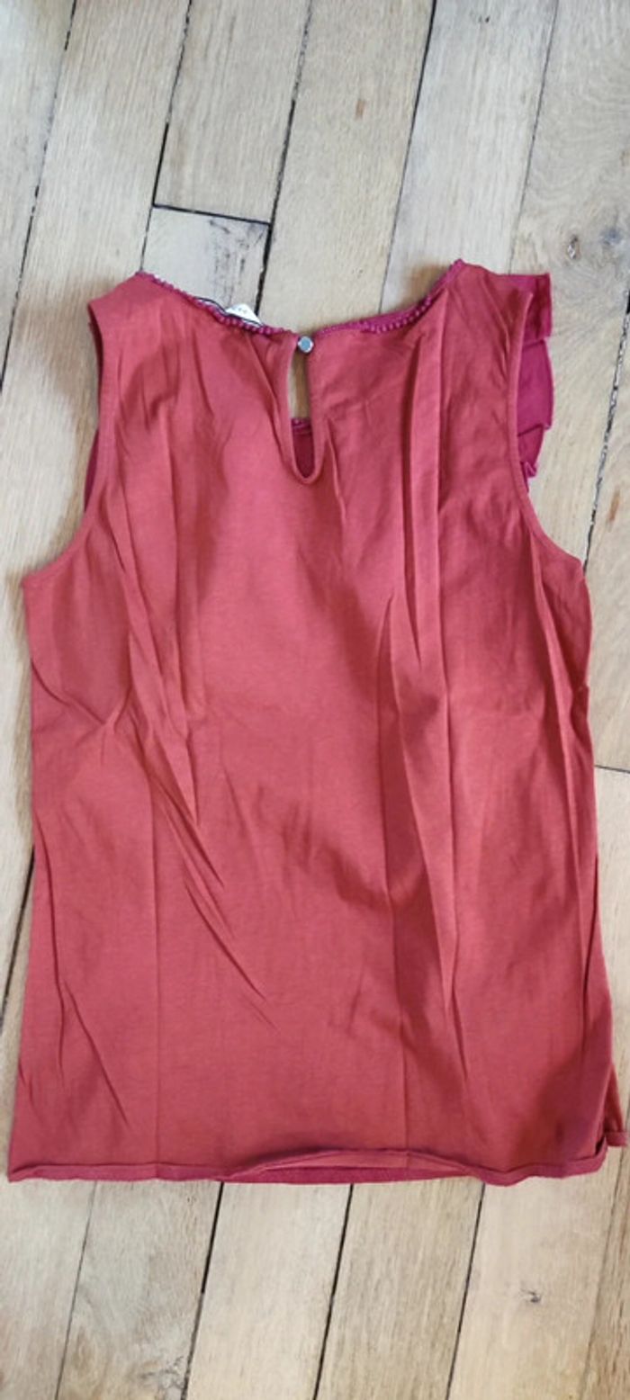 Haut sans manche avec broderie devant. Couleur brique en parfait état. Taille 1