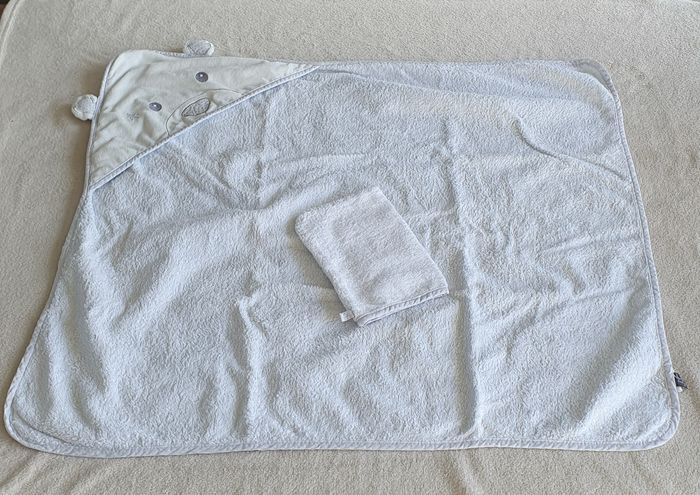Ensemble cape de bain motif "ours" + gant Taille 70x70cm Marque "Sauthon" Neuf