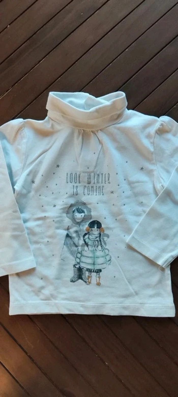 T shirt col roulé manches longues Marque Kiabi. "Winter is coming"🤣 Motif esquimau très mignon. Couleur crème avec pression au niveau du col. Pas de tâche ni de trou, juste bien porté. #2ansBecca