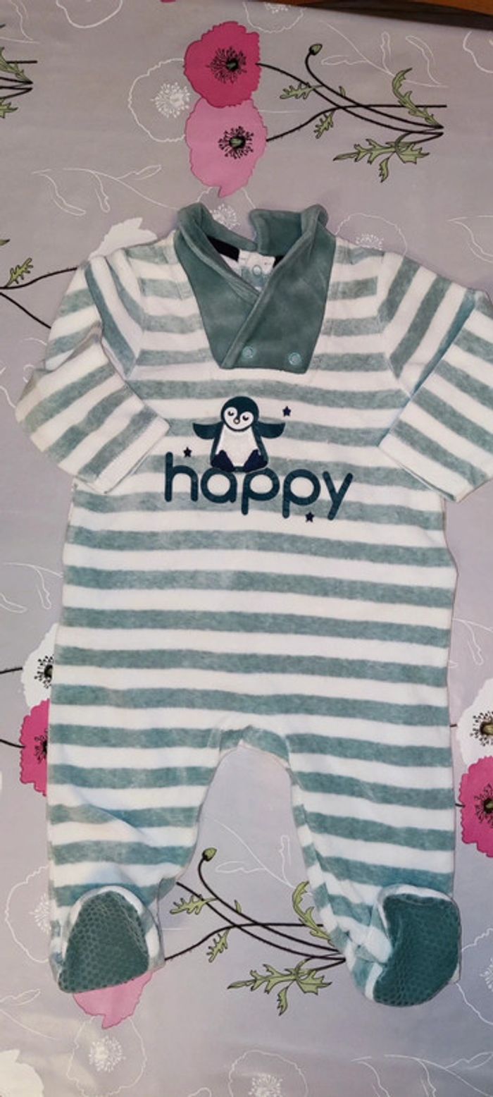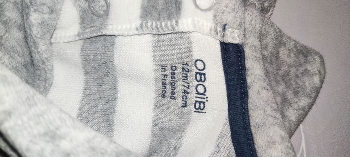 En parfait état, marque Obaïbi. Sur le thème du pingouin Un vert doux rayé blanc et un gris clair rayé blanc. #12moisGus #12moisBecca