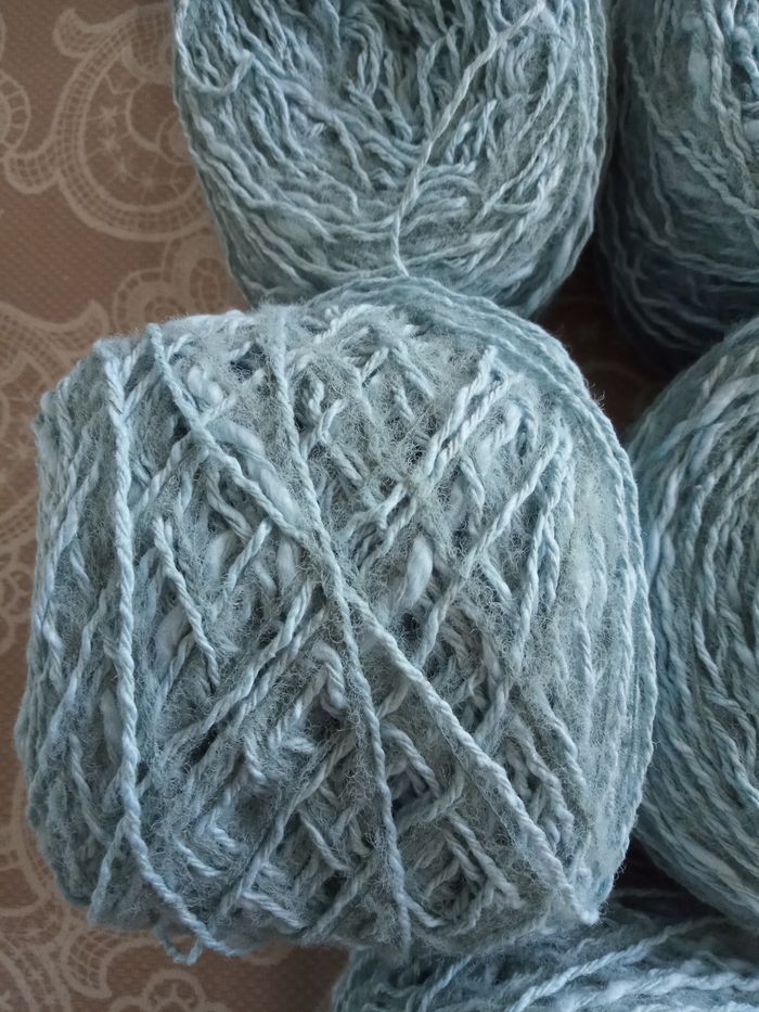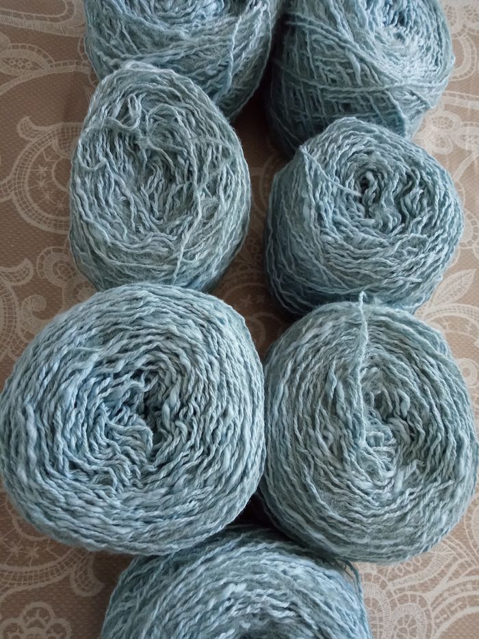 Lot de 7 Pelotes Fantaisies (665g) Couleur: Tons Bleus 1 fil moyen fantaisie et 1 autre fantaisie très fin au total 665g Lot en parfait état