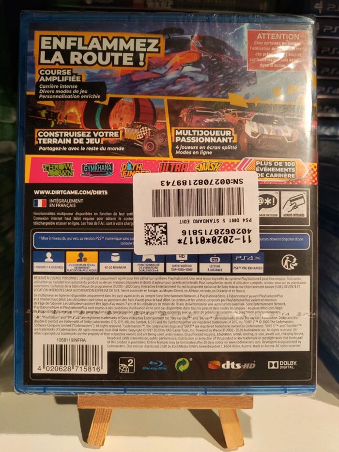 Je vends mon jeu Dirt 5 sur PS4. Le jeu est neuf sous blister, blister intact.