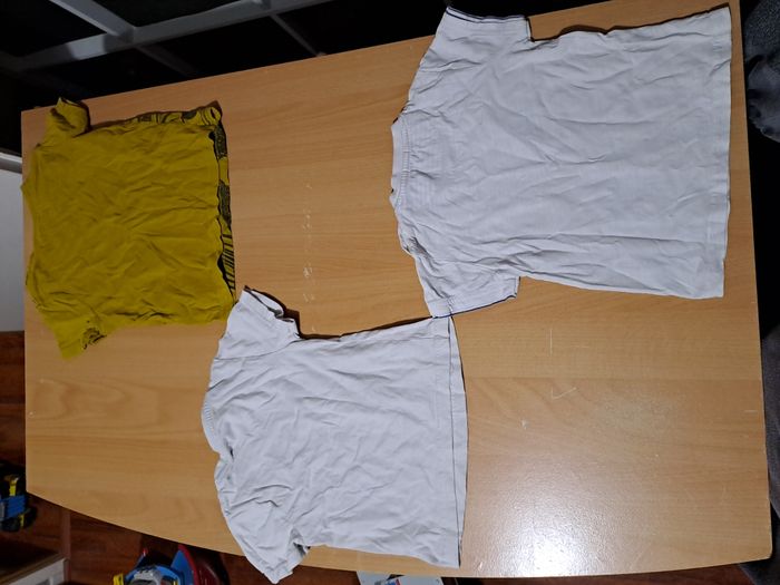 Lot de 3 tee shirt en taille 3 ans. Ils ont tous des tâches, voir photos. Non repassés.