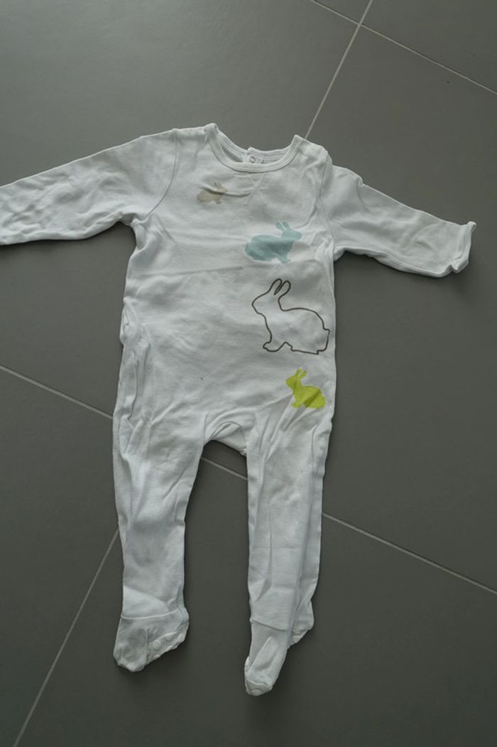 3 pyjamas Gris - Vert anis - Blanc Thème lapin Pieds antidérapants Vertbaudet 12 mois 74 cm