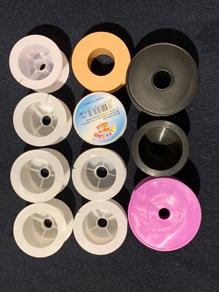 Lot 11 bobines vides en plastique De différentes dimensions Avec ses étiquettes d'origine Diamètre aprox 5 a 6.5cm A #bobine #bobinesvides #bobineencarton #loisirscréatifs #scrapbooking #cc_scrapbooking #cc_loisircreatifs