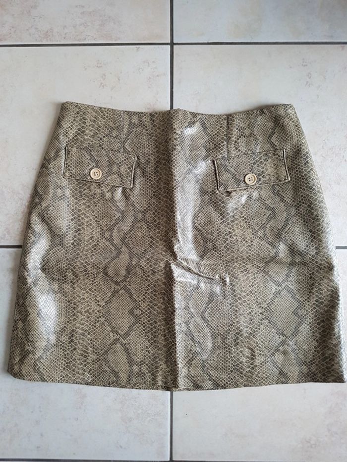 Jupe courte style serpent taille 40 longueur 43 cms 2 fausse poches sur le devant