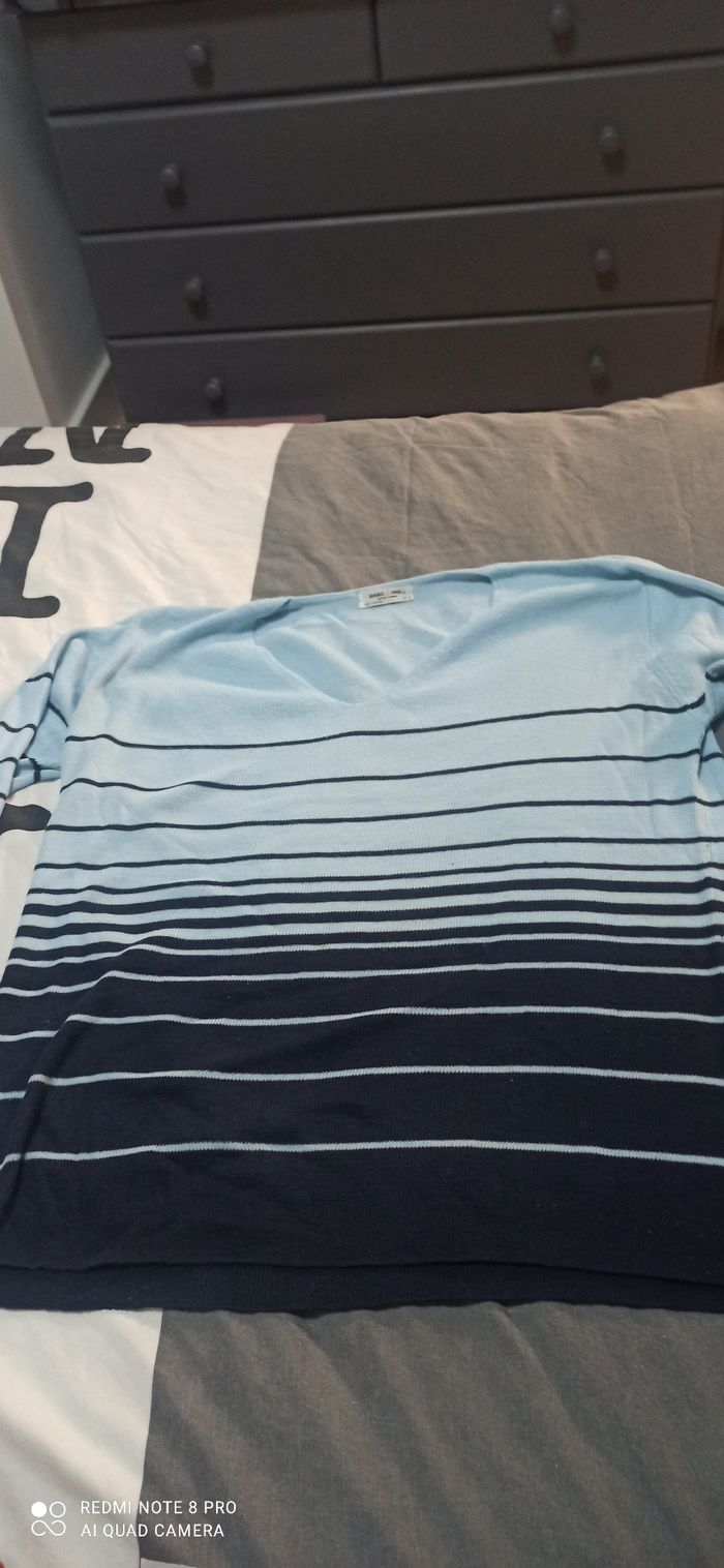 Vends lot de 5 pulls t. 46/48 ( petite tâche de javel sur la manche)